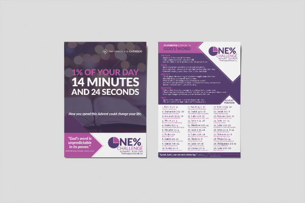 Our 1% Challenge resources guide you to use the saint-recommended way of reading Scripture, lectio divina (divine reading): Read, Reflect, Respond, & Rest. Fifteen minutes a day with the word of God changes lives!
