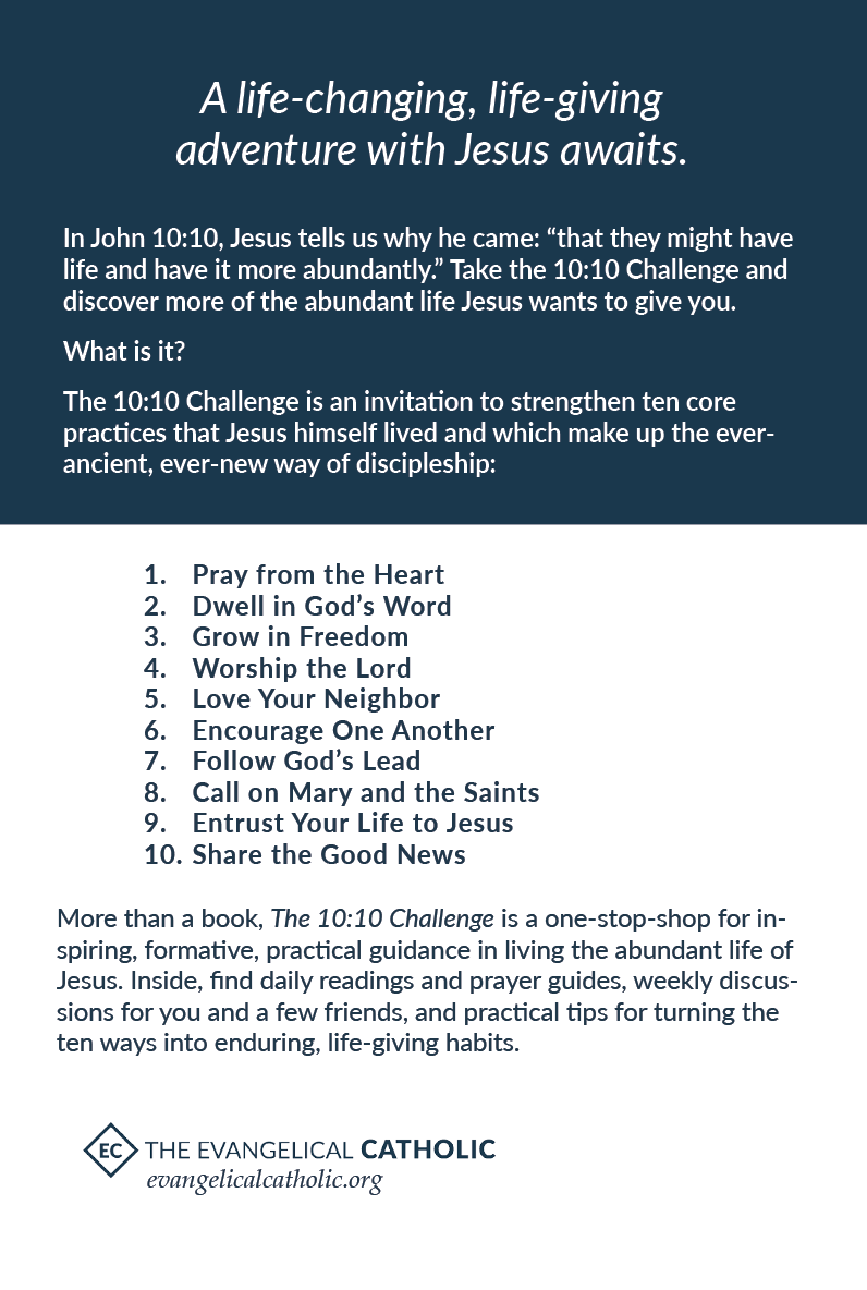 In John 10:10, Jesus tells us why he came: “that they may have life, and have it abundantly.” The 10:10 Challenge guides you through an intentional season of growth in the abundant life that comes from following Jesus. You and a partner or small group devote ten weeks to practicing and discussing ten ways of life that Jesus himself lived and which make up the ever-ancient, ever-new pathway of discipleship: