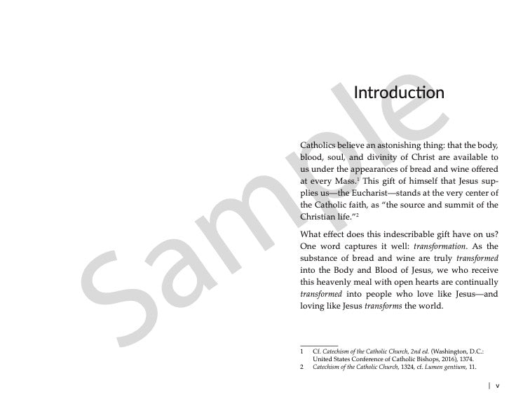 In this 6-week discussion guide for Catholic small groups, participants read and discuss key selections from Scripture, saints, and Church teaching around 6 transformations the Eucharist draws us into: